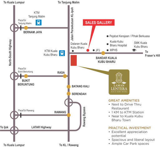 Laman Lentera serves as the beating heart of Kuala Kubu Bharu, providing the convenience of schools and police stations within a mere 2.4km radius. Within a 10km embrace, discover a haven of all-inclusive facilities, offering not just peace but a seamless blend of convenience.